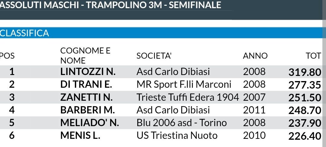 Con la seconda giornata di gare a Trieste si concludono anche le finali di specialità individuali valide per la Coppa “Los Angeles 2028”, valida come prima prova di selezione per i Campionati Europei di agosto; domani mattina si terranno infatti le gare sincronizzate, sia dal trampolino sia dalla piattaforma.