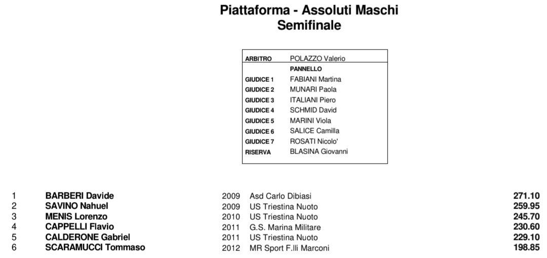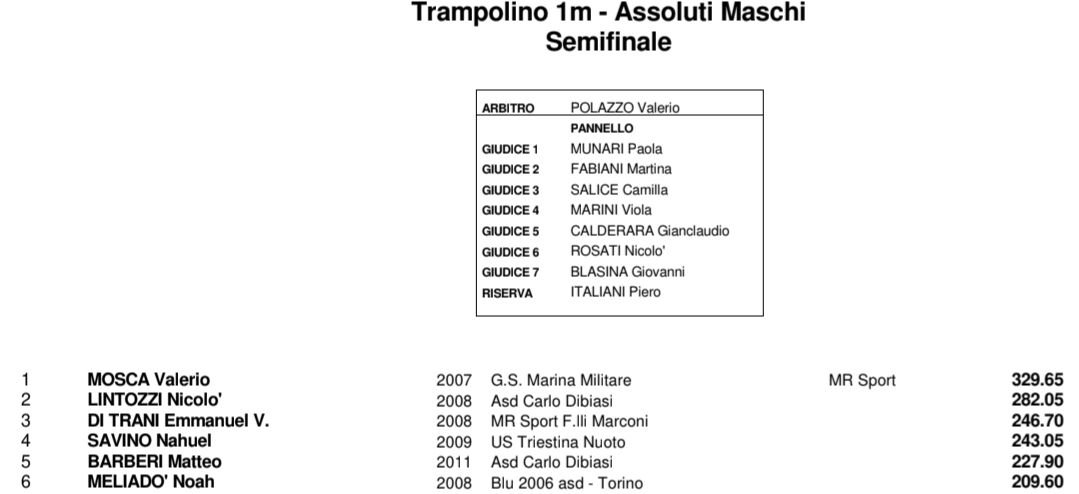 Nel primo pomeriggio si sono disputate le due semifinali in programma per assegnare gli ultimi due posti nelle rispettive finali: il turno supplementare ha premiato Valerio Mosca (Marina Militare) e Nicolò Lintozzi (Dibiasi) da 1 metro, e Davide Barberi (Dibiasi) e Nahuel Savino (Triestina Nuoto) dalla piattaforma.