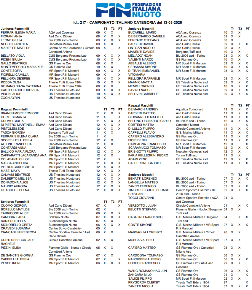 Piattaforma Senior maschile e femminile (gara unica)