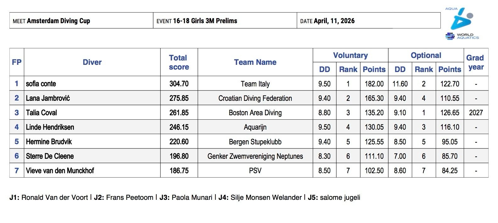 Terzo giorno di gare per l’Amsterdam Diving Cup e anche l’ultimo per la squadra azzurra che domani non avrà impegni agonistici.