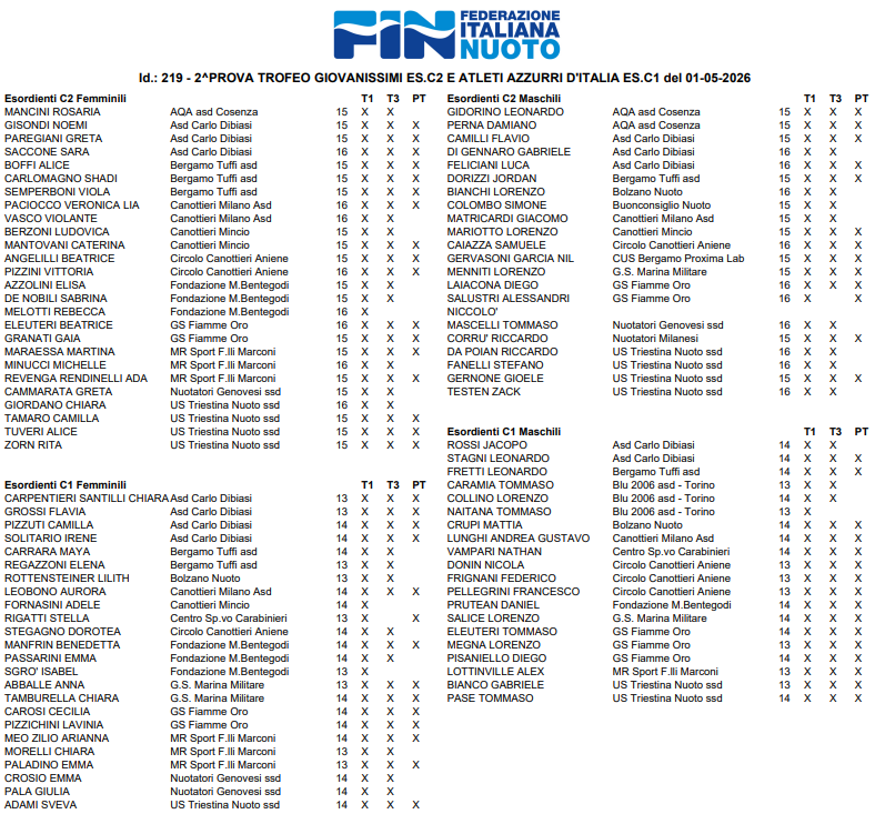 Per le atlete e gli atleti di queste categorie sarà il secondo, fondamentale appuntamento per accumulare i punti necessari a partecipare alle prove estive: per quanto riguarda la categoria C1, infatti, i primi sedici tuffatori per ciascuna specialità potranno partecipare al Gran Premio Atleti Azzurri d’Italia, in programma tra circa un mese al Foro Italico.